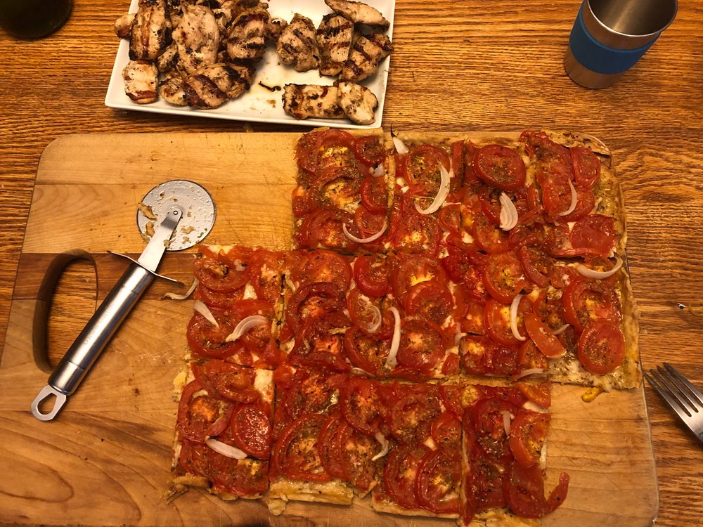 - Remove the sheet from the grill (turn off the grill unless you need to grill a side of chicken like I did last!) , take the tarte off the sheet by pulling on the parchment paper onto a wood cutting board. Let cool for about 5 minutes, slice and serve! Bon appétit!